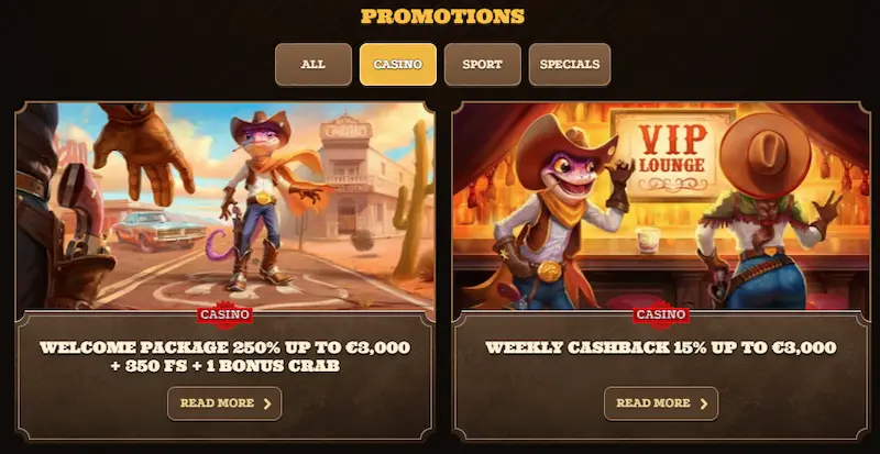 Lizaro Casino hace su entrada en el mercado de casinos en línea en octubre de 2025 con una identidad visual original basada en el tema del Lejano Oeste protagonizada por lagartos cowboys. Operado por Sligo Limited, una empresa con sede en Malta, este nuevo casino ofrece un impresionante catálogo de más de 13.200 juegos y un generoso paquete de bienvenida que puede alcanzar los 3.000€ acompañado de 350 tiradas gratis.