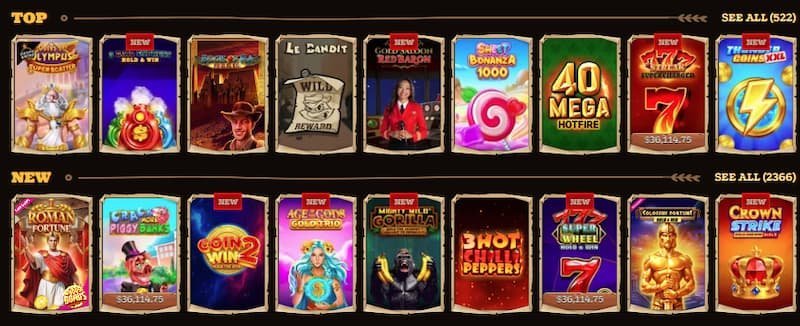 El catálogo cuenta con más de 13.000 juegos de más de 100 proveedores. Títulos populares: Gates of Olympus, Sweet Bonanza, Razor Shark, Book of Dead. Mecánicas disponibles: Megaways, Hold & Win, Bonus Buy. Modo demo accesible en la mayoría de los juegos.